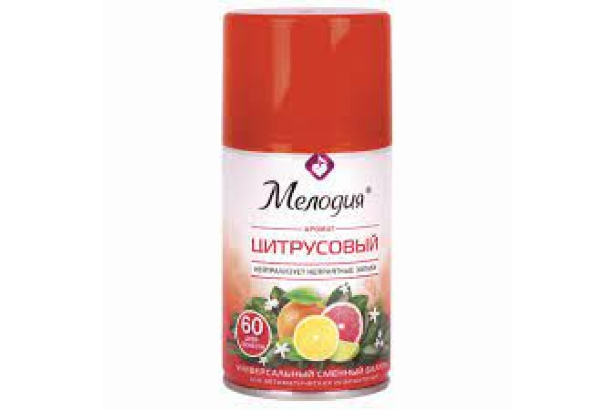 Сменный баллон 250 мл МЕЛОДИЯ "Цитрусовый", для автоматических освежителей, универсальный, 605229
