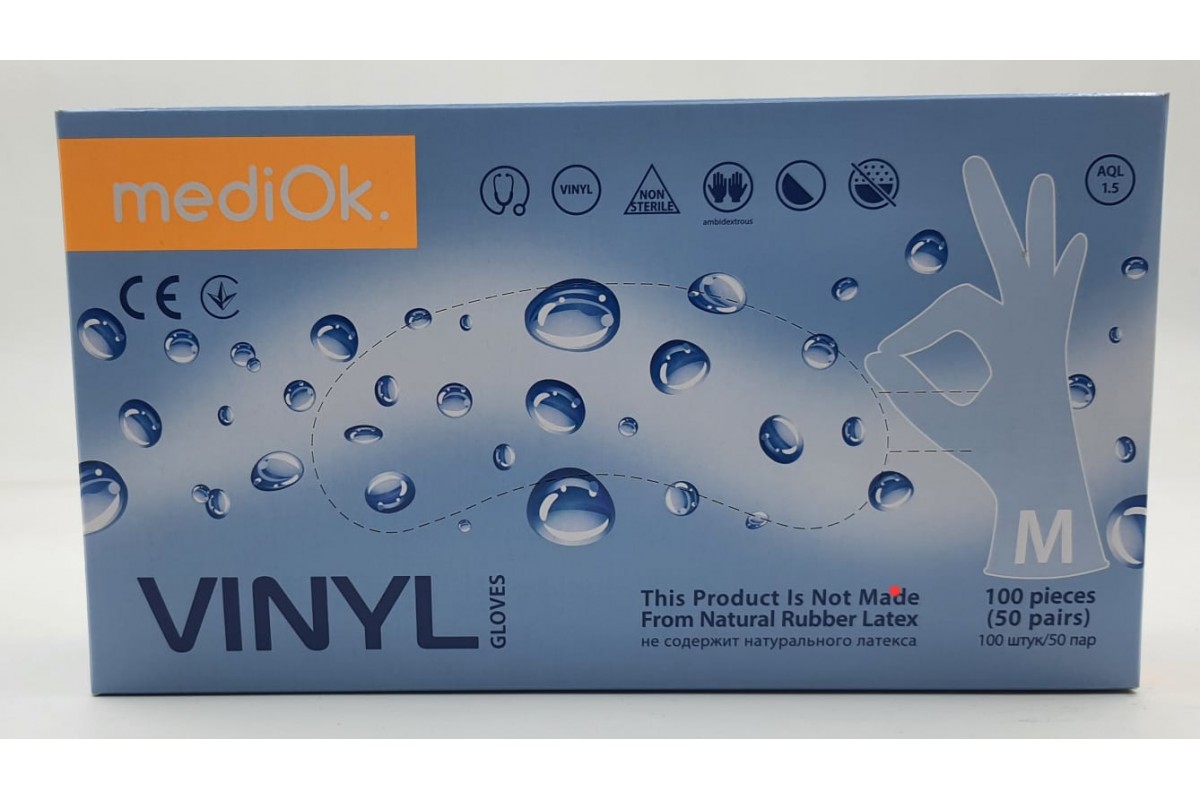 Перчатки виниловые М 50пар. 1/10